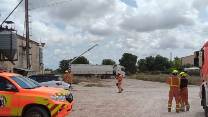 Un operario resulta herido por electrocución al tocar una línea de media tensión con su camión grúa en Bétera
