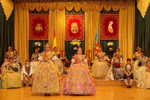 Posteriormente llegó el momento de coronar a Mª Amparo como Fallera Mayor. Fue su predecesora en el cargo, Manuela Mora, la encargada de imponerle la banda acreditativa. A continuación también se les impuso a las damas de la corte de honor que la acompañarán durante el ejercicio de su cargo, Conchin Benlloch y Alba Pérez. Acompañándola estuvieron también los representantes de su respectiva falla, Carrer de Lliria; y las falleras mayores de cada comisión de Benaguasil junto a sus respectivos presidentes.