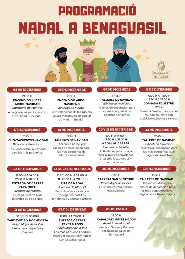 Benaguasil ultima los detalles para sumergirse en el ambiente navideño con una amplia programación organizada por el Ayuntamiento, pensada para todas las edades y que combinará tradición, música, deporte y actividades al aire libre.