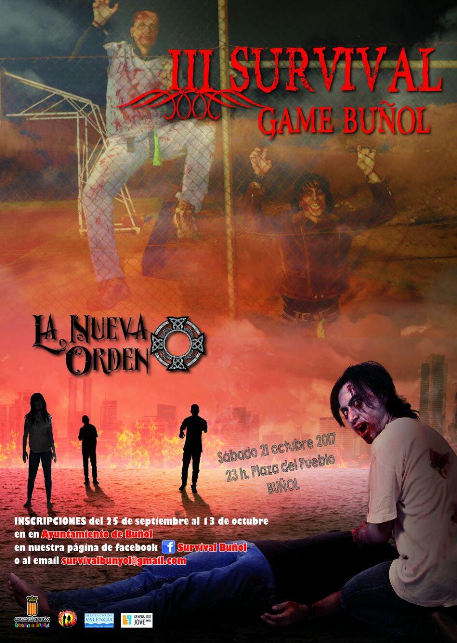 La Concejalía de Juventud del Ayuntamiento de Buñol y la Comisión Zombie recuerdan que el próximo 21 de octubre tendrá lugar el III Survival Game en la localidad. A partir de las 23h en la Plaza del Pueblo, zombies, supervivientes y militares se darán cita en esta tercera edición de juego de realidad virtual real que transcurrirá por diversas zonas del municipio.