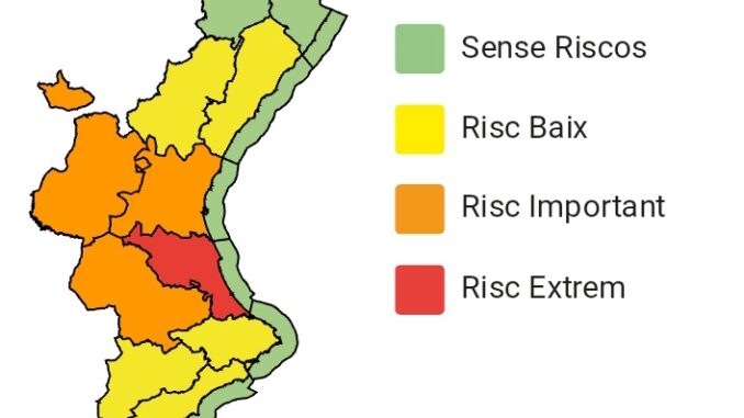 Aemet eleva a nivell roig l’alerta meteorològica en part de la província de València per risc extrem de pluges i fenòmens associats