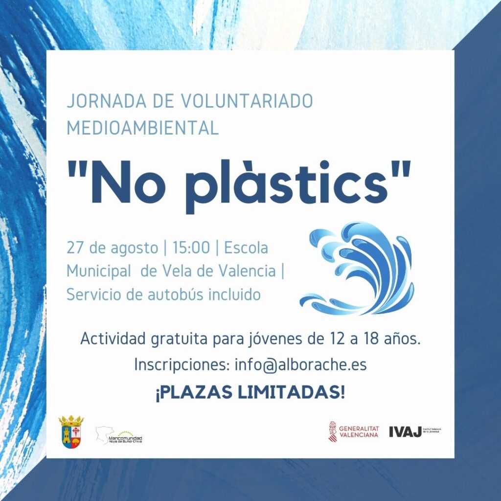 Per a la Jornada de voluntariat mediambiental “No Plàstics”, que tindrà lloc a l’Escola Municipal de Vela de València, s’ha habilitat un autobús amb sortida i arribeu a Alborache, també gratuït per a les persones participants.