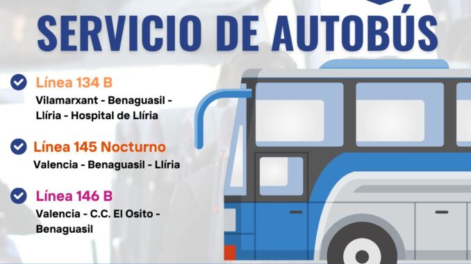 D’una banda la línia 134B Vilamarxant-Benaguasil- Llíria que donarà servei als veïns i veïnes a l’hospital de Lliria,