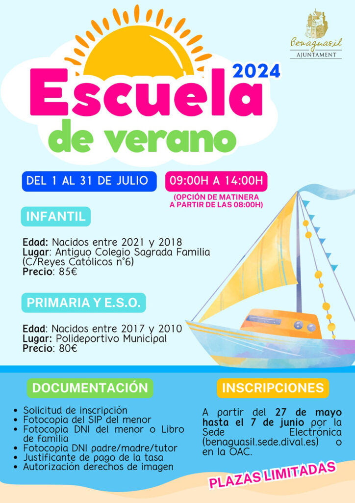 Es tracta d’una iniciativa orientada a facilitar la conciliació familiar i laboral quan les classes escolars ja han finalitzat, i pensada perquè els xiquets i xiquetes continuen tenint activitats lúdiques, esportives i educatives durant l’estiu. En aquest sentit l’escola d’estiu comptarà amb monitors titulats que tractaran què els menors es divertisquen i aprenguen a través de diferents activitats i tallers com a manualitats, jocs, activitats esportives, piscina, etc.