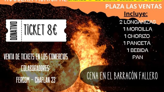 Després de l’encesa de la foguera, els assistents podran gaudir del sopar en un ambient festiu en el Barracó de Las Ventas, on a partir de les 12,30, la Dj Loles Martínez posarà música i diversió per a tancar la nit en gran.
