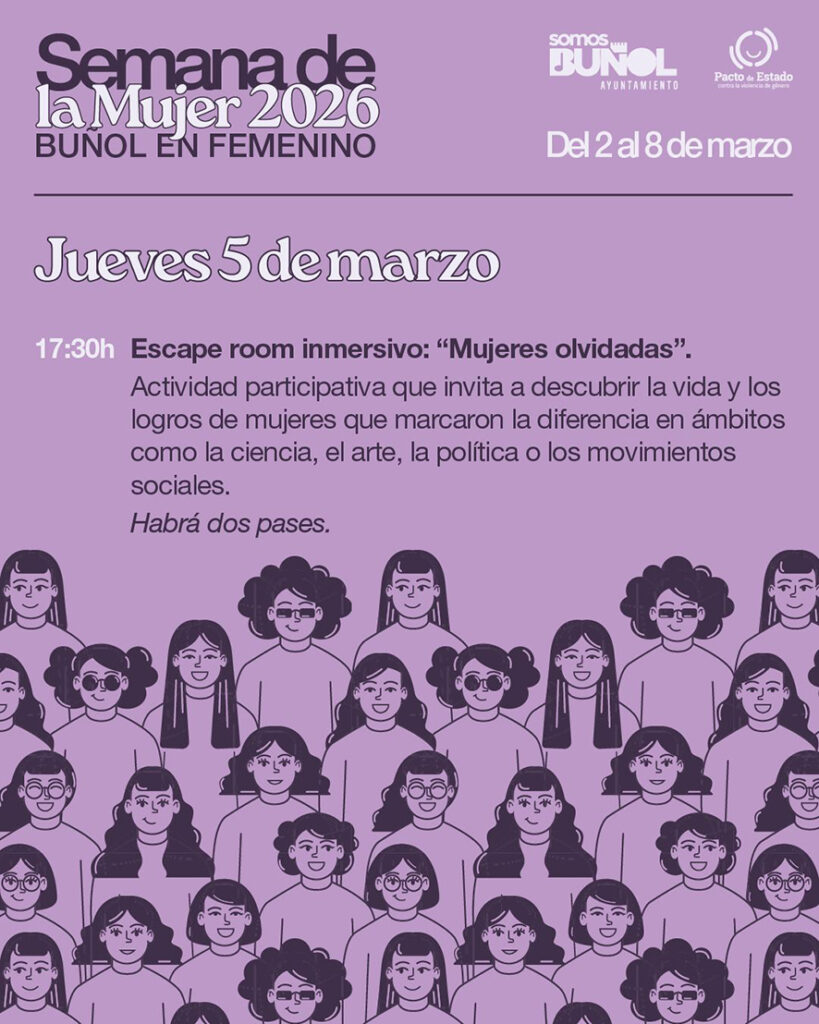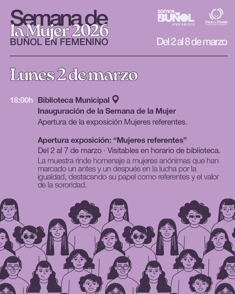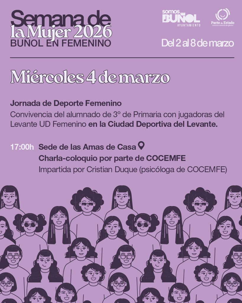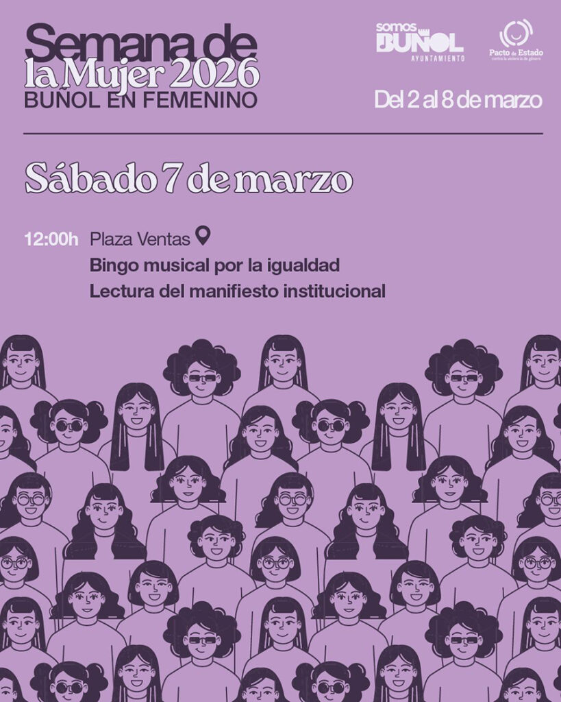 L’Ajuntament de Bunyol ha organitzat una nova edició de la Setmana de la Dona, que se celebrarà del 2 al 8 de març sota el lema “Bunyol en femení” amb una programació pensada per a visibilitzar el paper de les dones en la societat i continuar avançant cap a una igualtat real.