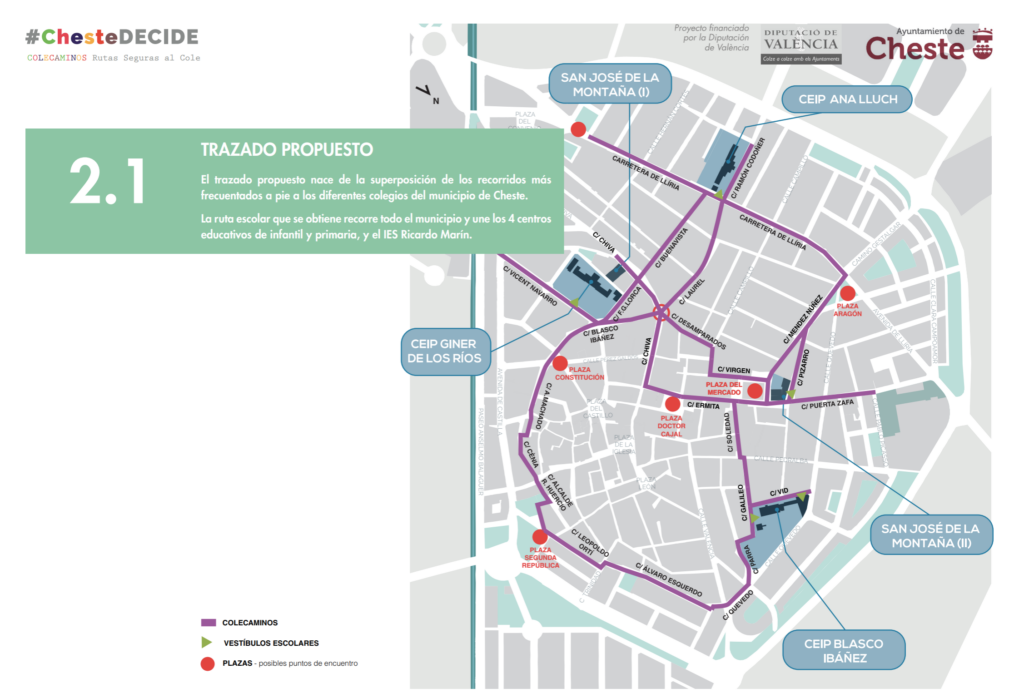 “Prop del 70% de la comunitat educativa va participar en una enquesta per a decidir els recorreguts a través dels carrers que es van considerar que eren més transitades i després les vam recórrer junts per a detectar necessitats i deficiències”, ha explicat l’alcalde, José Morell. “La següent fase de la iniciativa Colecaminos serà recórrer de nou. al costat de la Policia i les AMPA, cadascuna de les rutes per a detectar les senyalitzacions necessàries”.