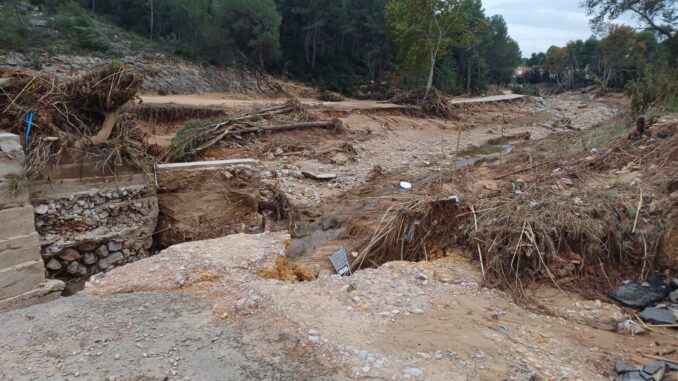 Un dels efectes més importants va ser l’arrossegament i acumulació de materials, molts d’ells vegetals, en els llits dels llits i en punts d’obstrucció, com a arbres, ponts i altres estructures, representant un risc elevat davant possibles futures avingudes si no s’eliminen adequadament.
