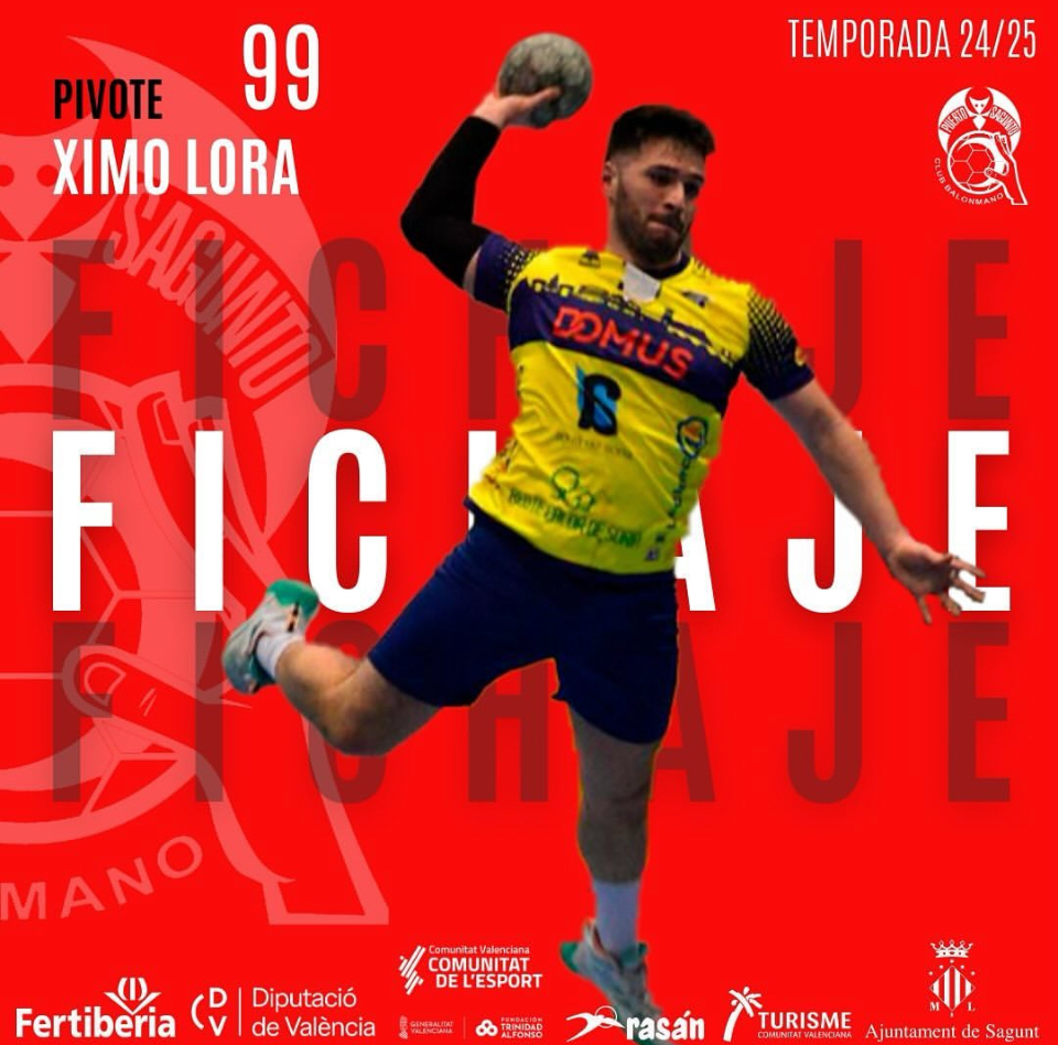 El Fertiberia Handbol Port Sagunt ha anunciat el fitxatge de Ximo Lora, un talentós pivote procedent del BM Soria. Format inicialment en la pedrera del Club Handbol Bunyol, Lora també va passar per la pedrera del Llevant UDBM Marni de València, destacant-se com un jugador amb una gran capacitat defensiva i ofensiva.