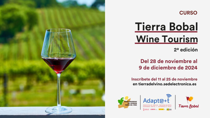 El Projecte Adapt@+t de la Mancomunitat de l’Interior Tierra del Vino (MITV) llança la segona edició del curs “Tierra Bobal Wine Tourism”, l’objectiu de la qual és donar resposta a la necessitat, plantejada per ocupadors i demandants d’ús del sector turístic, de millorar el nivell d’anglés dels guies i acompanyants turístics de Tierra Bobal. D’aquesta manera, aquesta segona edició busca aproximar-se a la cultura, paisatge i patrimoni del vi de Tierra Bobal, a través de continguts en anglés especialment enfocats en el enoturismo, un dels sectors més dinàmics de la zona.