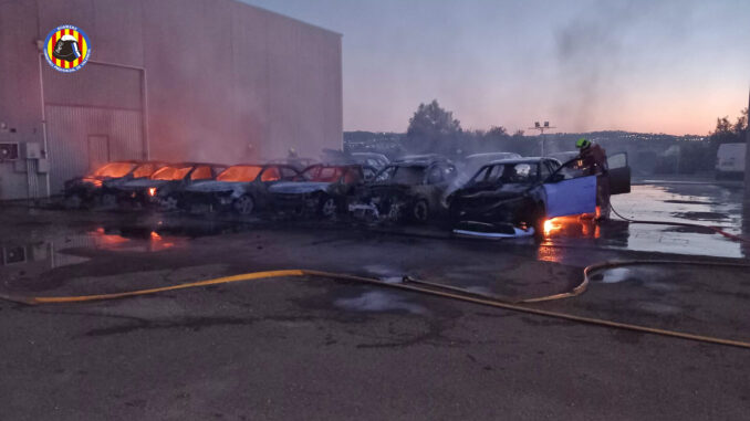 Els bombers extingeixen un incendi que ha afectat 14 vehicles en una campa de Xest