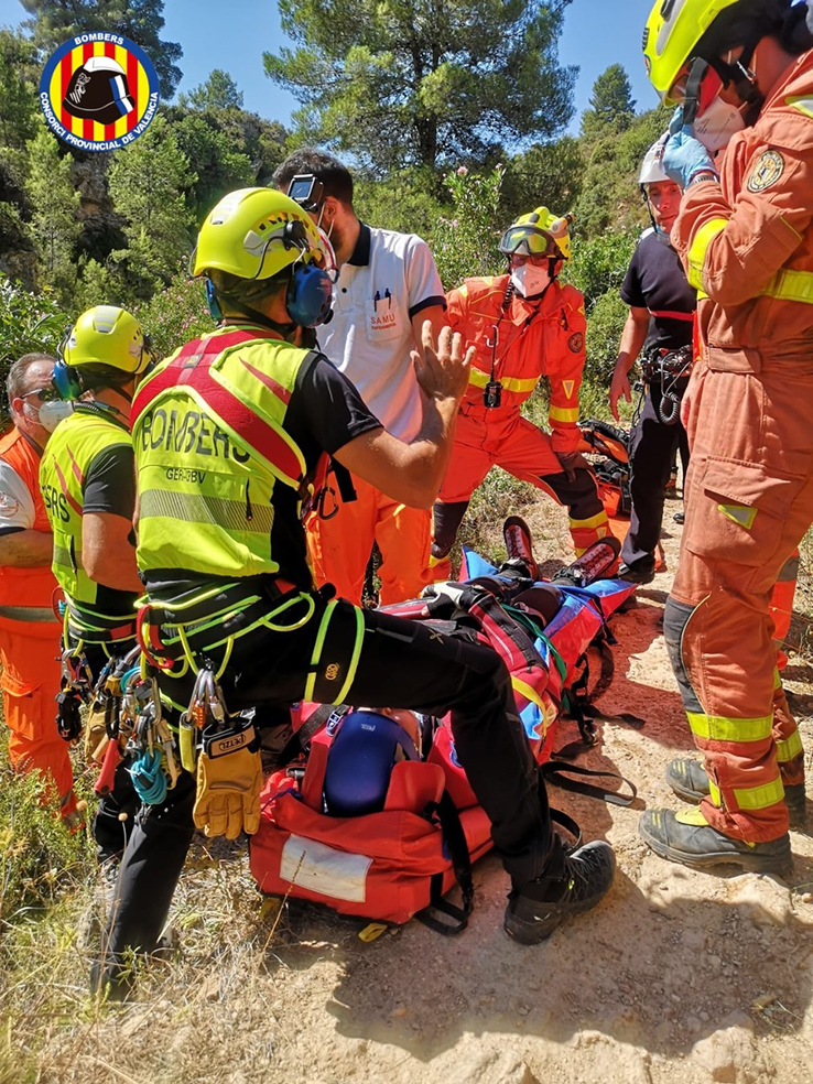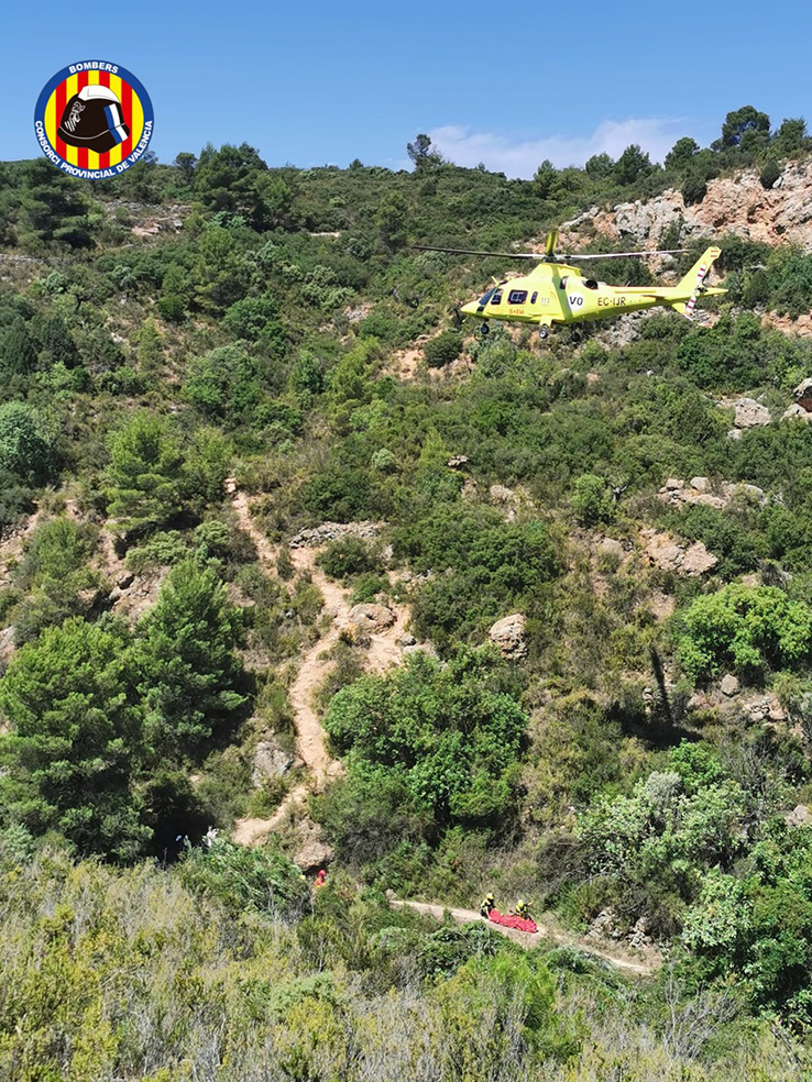L’avís s’hi ha rebut a les 10:55 del matí, i han actuat dotació de bombers de Chiva, sergent de Requena, Grup de Rescat en Altura GERA del Consorci i helicòpter de rescat de GVA. Estava a una zona de difícil accés.
