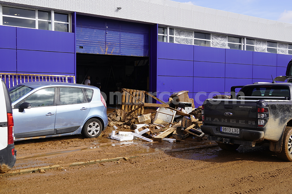La DANA ha deixat un rastre de devastació en el polígon industrial La Pahilla, a Xiva, on nombroses naus han quedat inundades i cobertes de fang. La intensa acumulació d’aigua i sediments ha provocat greus danys en maquinària i materials, que en molts casos han quedat inservibles i que per tant no podran reprendre les seues activitats empresarials.