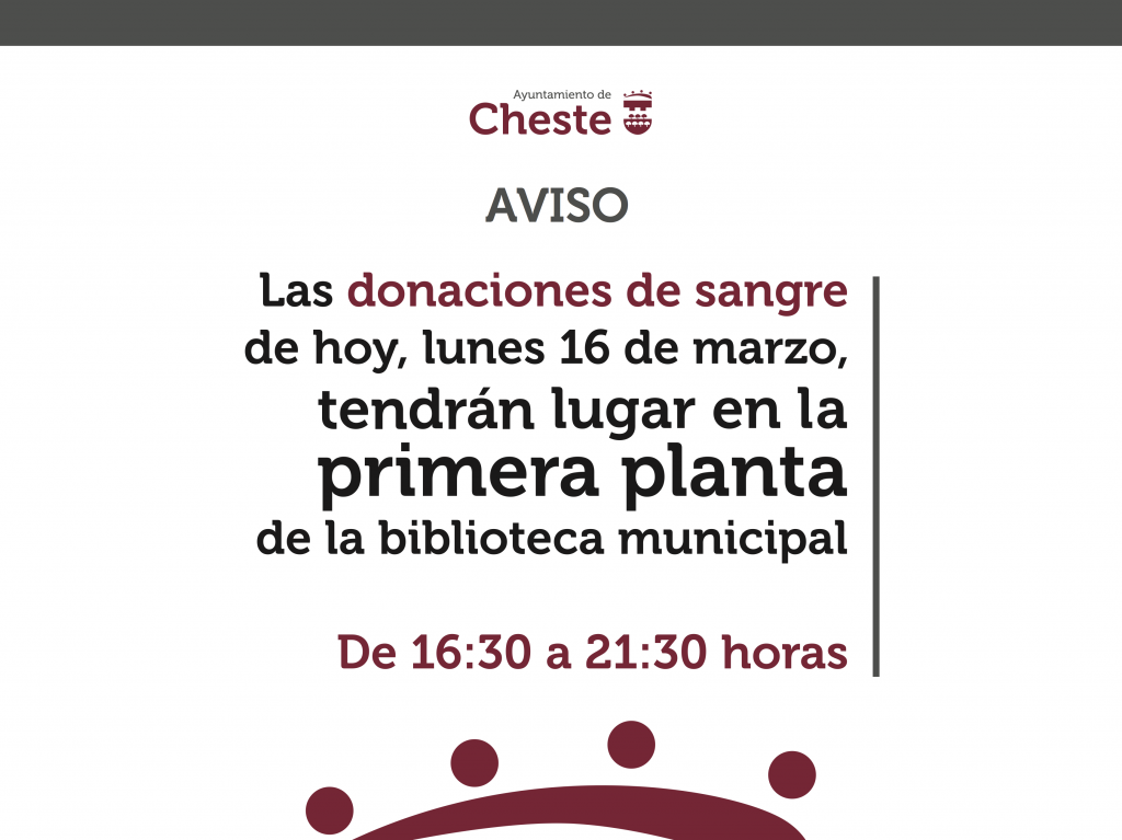 En primer lloc, s’ha acordat que les donacions de sang programades per aquesta tarda al Centre de Salut de Xest es realitzaran a la primera planta de la biblioteca municipal, entre les 16:30 i les 21:30 hores.