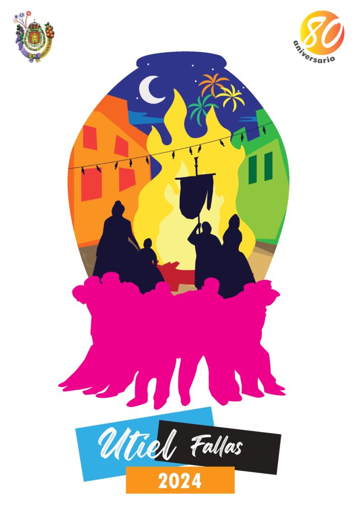 El cartell presentat sota el lema “Foc, tinajas i falles” representarà a les festes falleres d’Utiel en aquest any especial de commemoració del seu 80 aniversari.