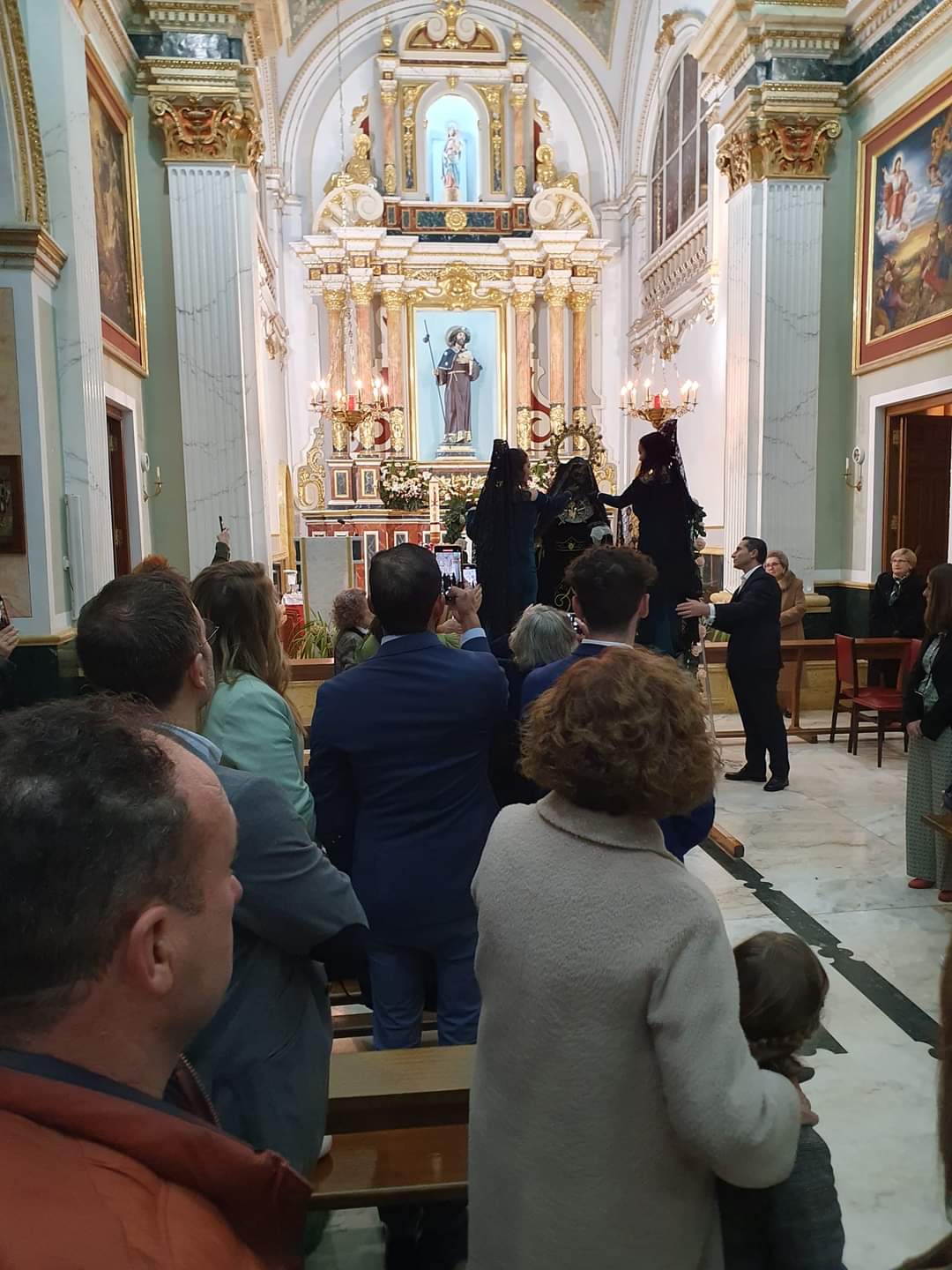 Al Encontre d’Alboraig van ser les joves Sofía Perelló Yatim i Mara Perelló Beltrán, clavàries del Encontre, els qui es van encarregar de retirar el vel a la Verge sota l’atenta mirada de nombrosos veïns citats per a l’ocasió en el temple parroquial a causa de la mala climatologia del diumenge de Pasqua, que per causa de la pluja va obligar a realitzar aquest tradicional acte religiós dins de l’església, acte que es tancaria amb la Santa Missa.