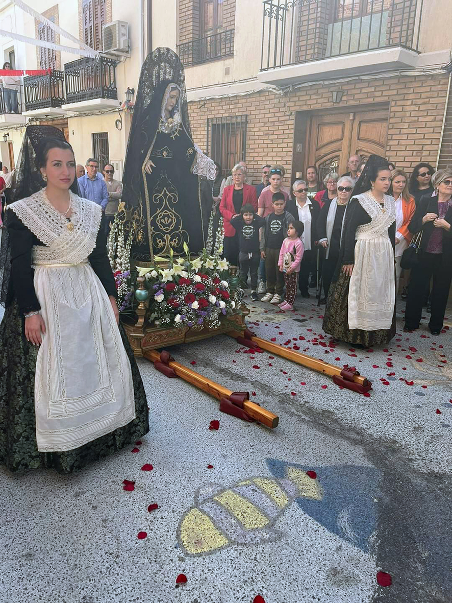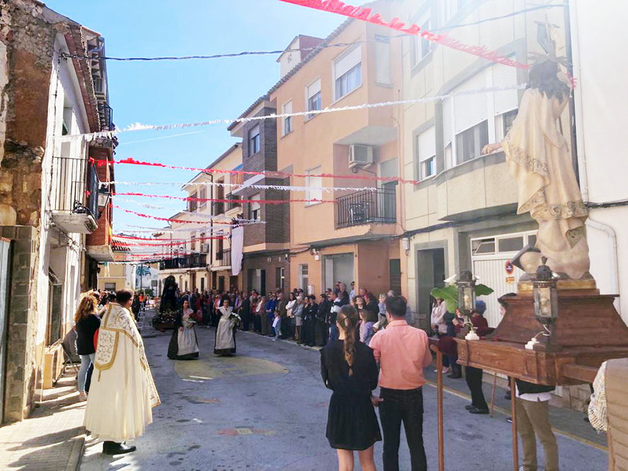 En el matí de Pascua d’Alboraig van ser les xiquetes Sandra Briz Alcocer i Lucía Soriano Briz, clavàries de “El Encuentro”, trenta anys després que ho foren les seues mares, els qui es van encarregar de retirar el vel a la verge sota l’atenta mirada de nombrosos veïns i veïnes citats per a l’ocasió en un assolellat matí de diumenge que es tancaria amb la tradicional eucaristia.