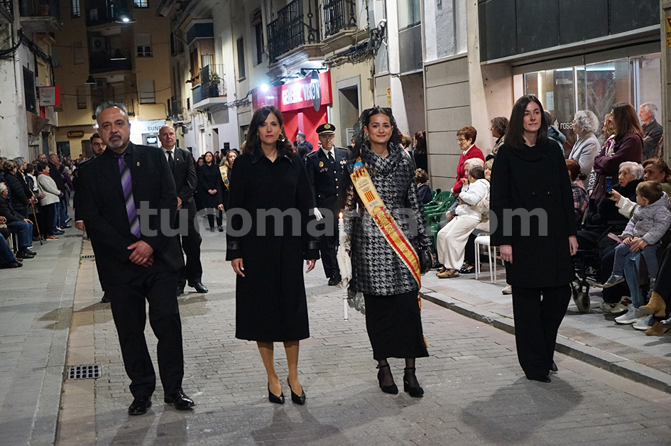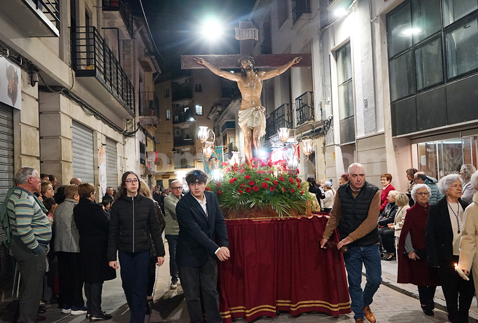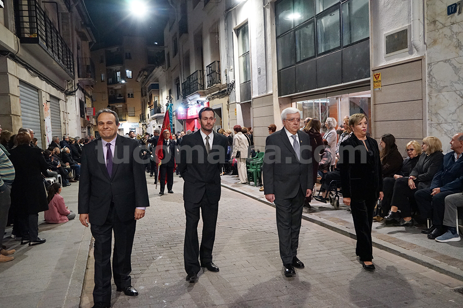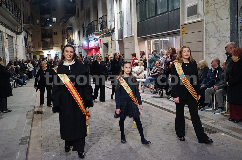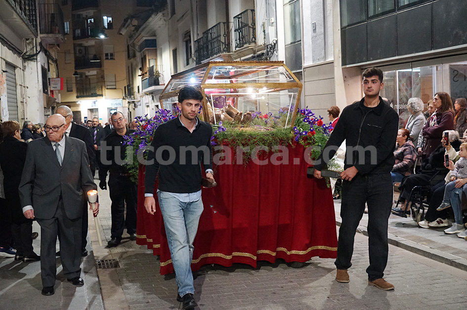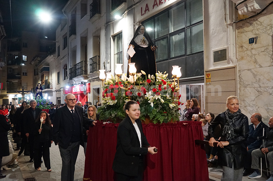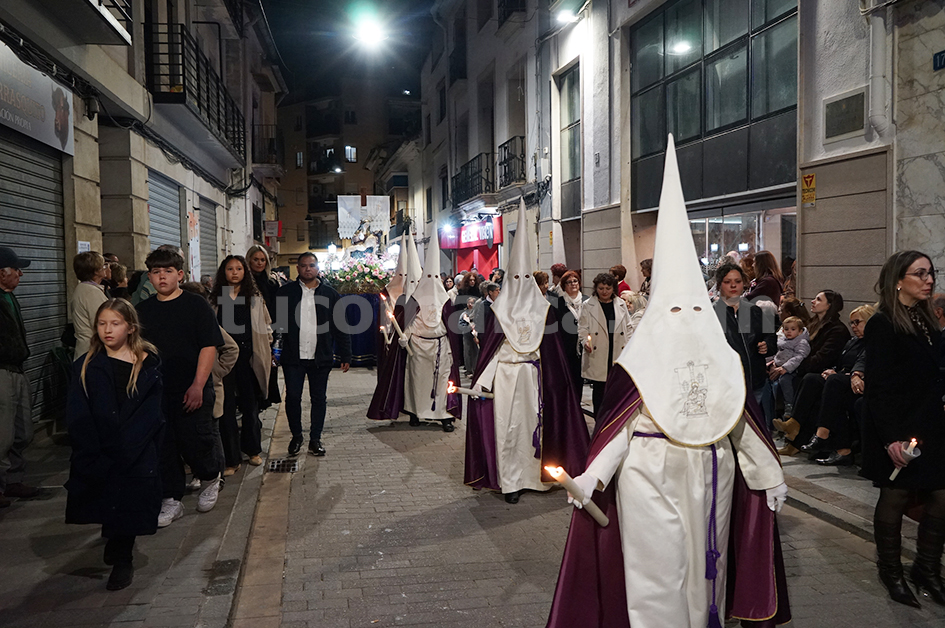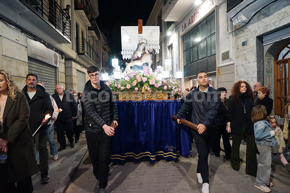 Feligresos de les parròquies de Sant Pere Apóstol i La nostra Senyora dels Dolores han portat les andes amb les imatges durant la desfilada processional, que ha recorregut els carrers centrals de la localitat en un ambient de respecte i devoció.