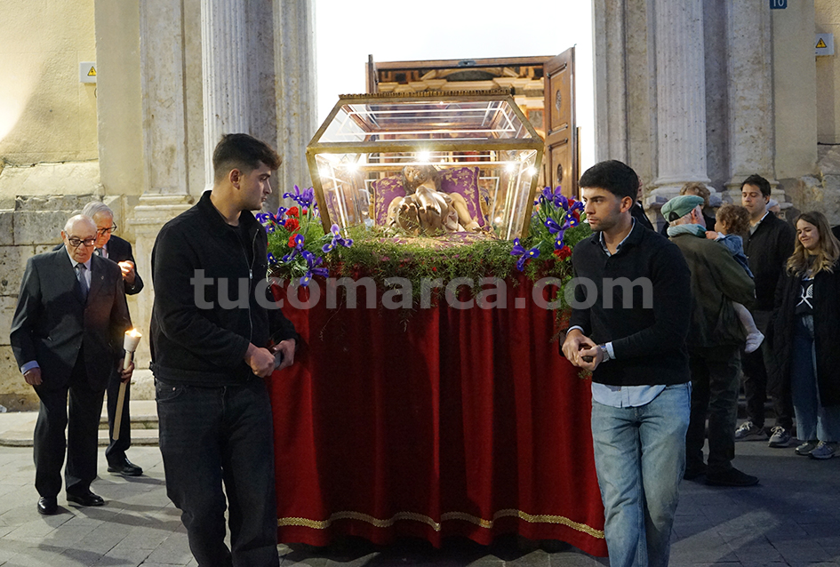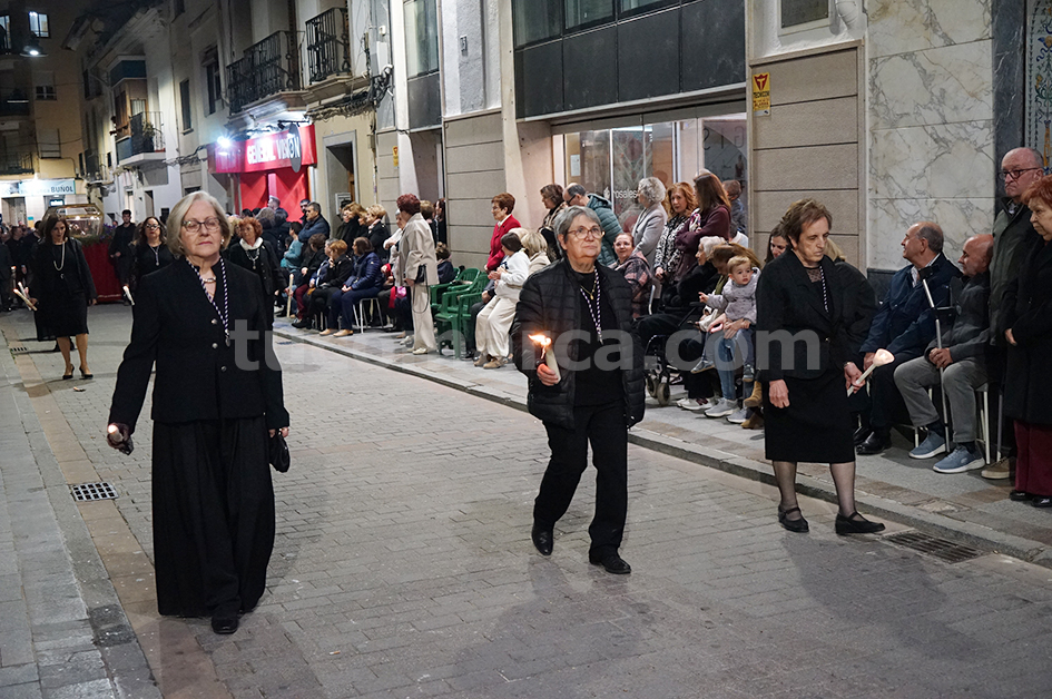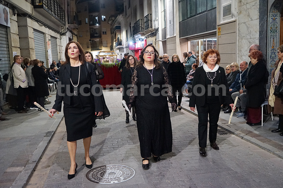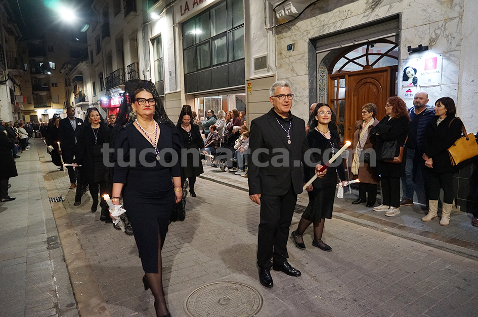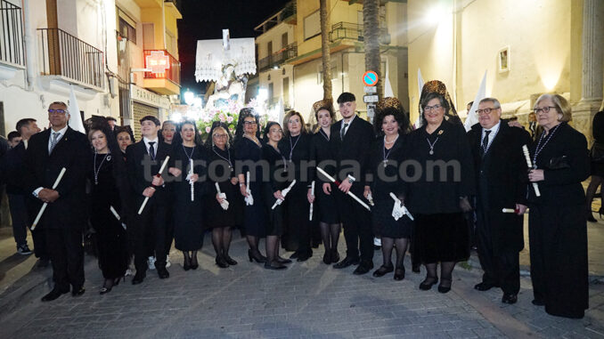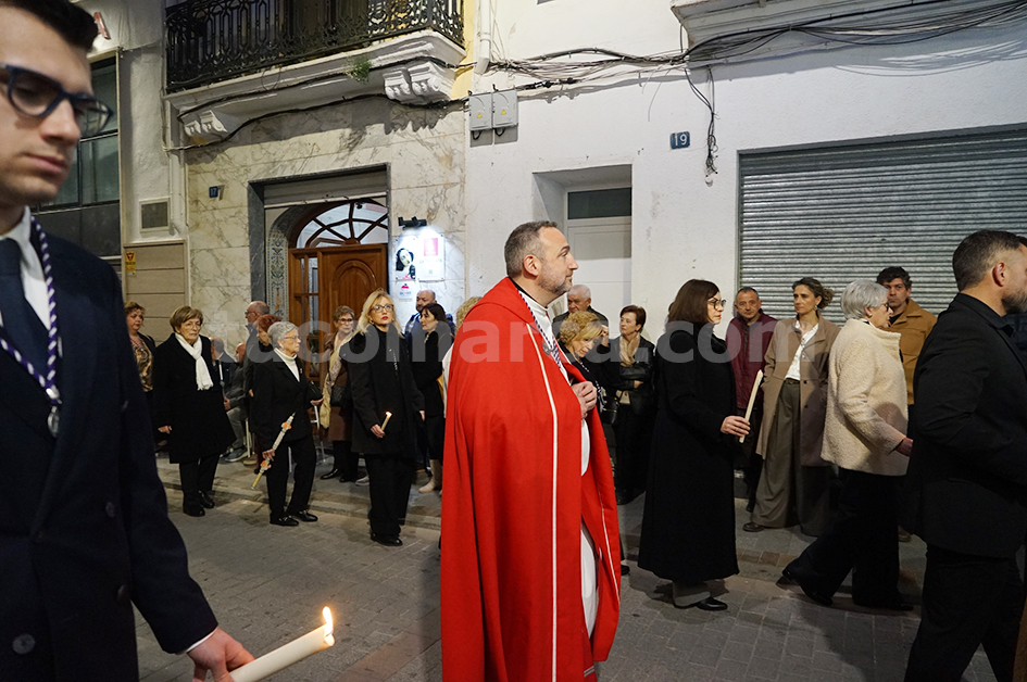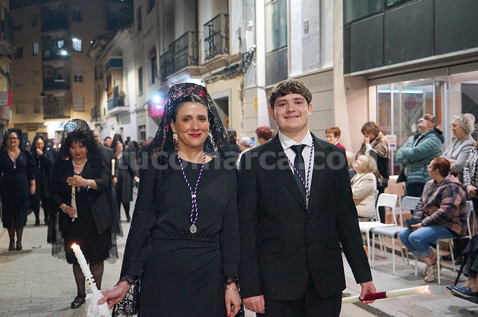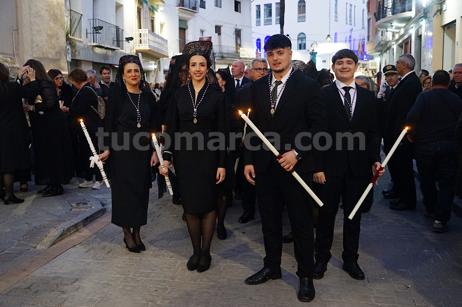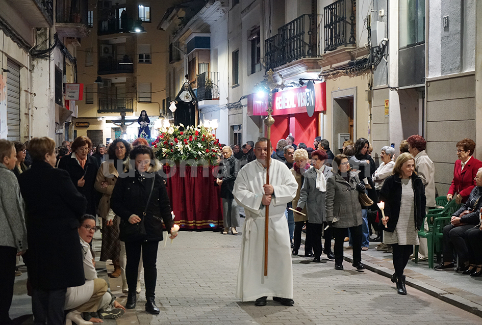 Feligresos de les parròquies de Sant Pere Apóstol i La nostra Senyora dels Dolores han portat les andes amb les imatges durant la desfilada processional, que ha recorregut els carrers centrals de la localitat en un ambient de respecte i devoció.