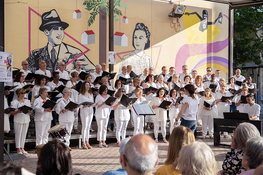 La primera part de l’actuació va ser a càrrec de la coral infantil, amb un repertori de cançons populars valencianes que es van interpretar coreografiadas, com Cançó de bres per a una princesa negra, d’Antoni Rodríguez Sabanés; o És Cucut de l’avi, de Queta i Teo. En la segona part van cantar les corals adultes, obrint el seu concert amb Cantique de Jean Racine, de Gabriel Fauré, en commemoració pel centenari de la mort de l’autor. Dins del repertori també van cantar els poemes Nocturns de la finestra, de Federico García Lorca, amb música del compositor Francesc Vila, i coneguts temes de cantautors hispans com Et recorde Amanda, de Víctor Jara; Cantares, de Joan Manuel Serrat i Que tinguem sort, de Lluís Llach. L’acte va finalitzar amb un cant comú de totes les corals, que van interpretar la cançó popular sud-africana Shosholoza. Per a acomiadar-se, la directora va proposar al públic participar en un breu joc de cant. “Per si després d’escoltar-nos us heu quedat amb ganes de cantar també, us propose que fem una macedònia musical, en la qual ens dividirem per a cantar diferents noms de fruites en una divertida melodia”, explicava Marbre, abans de donar per finalitzat el concert.