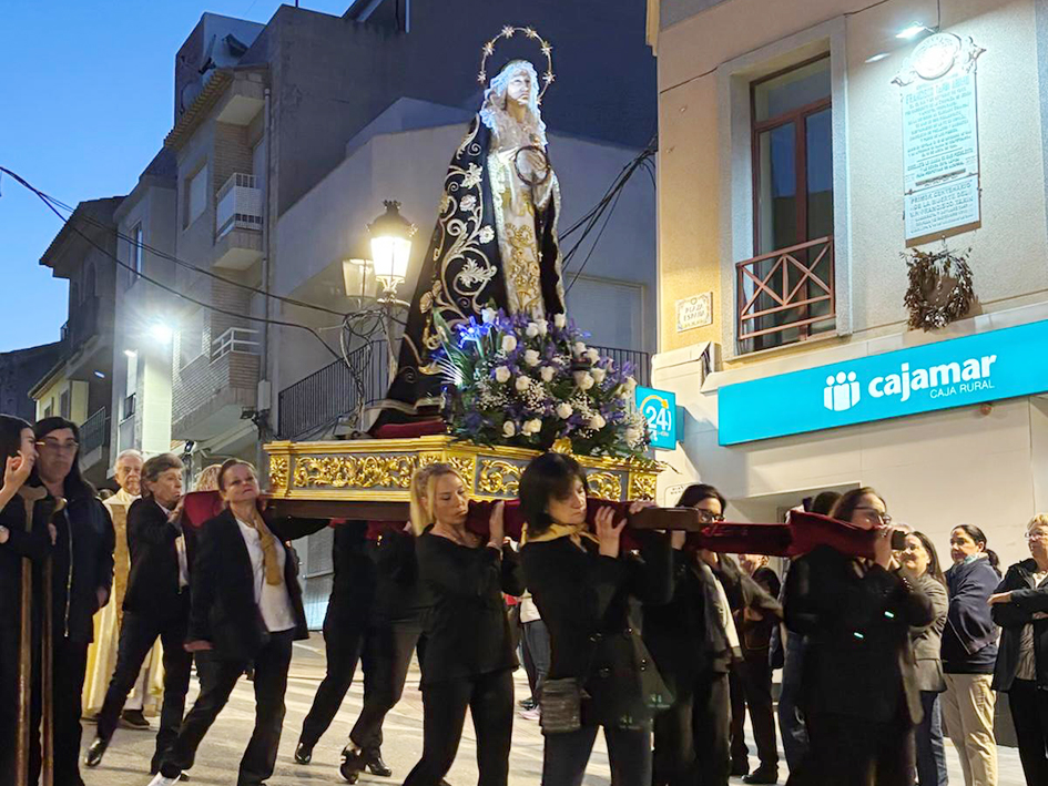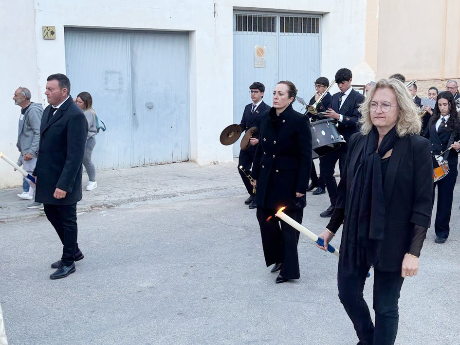 Un dels moments més representatius va ser el Divendres Sant, amb la celebració dels Sants Oficis de la Passió del Senyor, l’Adoració de la Creu i la comunió, seguits del viacrucis i la tradicional processó, que va recórrer els carrers del municipi congregant agran part del veïnat. L’equip de govern va ser present en la comitiva, encapçalada pel rector Don José, acompanyat per l’alcaldessa, Amparo Pardo Luján, la regidora d’Educació, Cultura, Festes i Serveis Municipals, Paqui Rico Lázaro, i el regidor d’Agricultura, Comerç, Indústria i Transport, José Miguel Caballero.