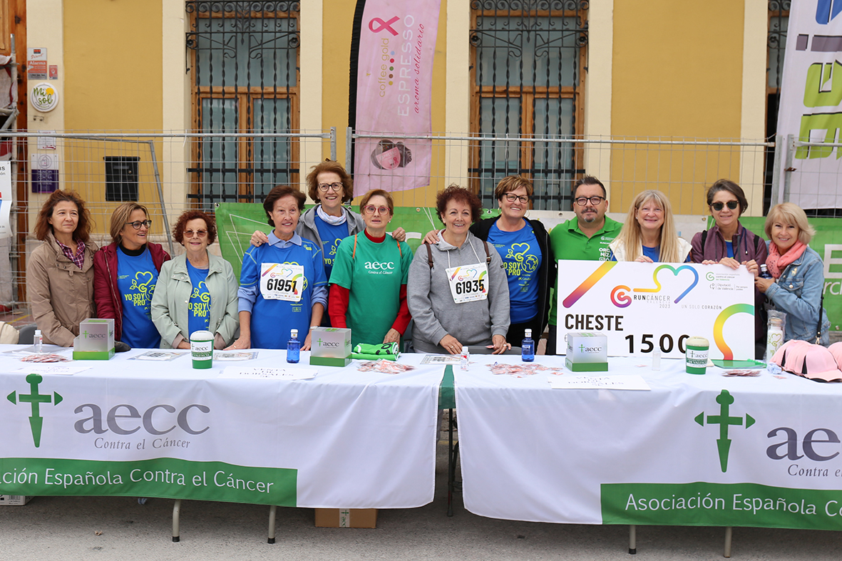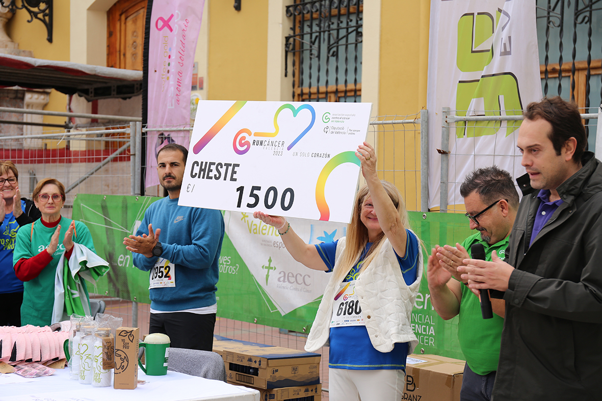 Després dels discursos, les autoritats i la junta local de la AECC es van col·locar en l’arc d’eixida per a fer-se una foto amb el xec de la recaptació. El tret d’eixida es va donar prop de les 10.00 i, com és habitual en aquest esdeveniment, el bon ambient va ser el protagonista del recorregut, que va finalitzar de nou en la plaça Doctor Cajal. La prova va comptar amb la col·laboració del Club atletisme, *ChesteFit, Falla Barri de l’alegria, Peña taurina, Club d’escacs, CD Xest, Xest *Basket Club, Peña Xest Che i Protecció Civil en el tancament i cort de carrers.
