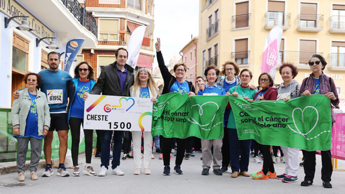 Després dels discursos, les autoritats i la junta local de la AECC es van col·locar en l’arc d’eixida per a fer-se una foto amb el xec de la recaptació. El tret d’eixida es va donar prop de les 10.00 i, com és habitual en aquest esdeveniment, el bon ambient va ser el protagonista del recorregut, que va finalitzar de nou en la plaça Doctor Cajal. La prova va comptar amb la col·laboració del Club atletisme, *ChesteFit, Falla Barri de l’alegria, Peña taurina, Club d’escacs, CD Xest, Xest *Basket Club, Peña Xest Che i Protecció Civil en el tancament i cort de carrers.
