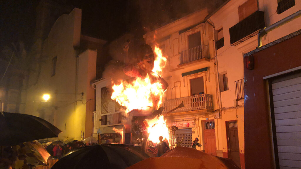 Però totes elles armades amb els seus paraigües han cremat els seus monuments amb l’alegria d’haver pogut celebrar-les i amb l’esperança que l’any vinent es puguen tornar a gaudir en tota la seua plenitud.