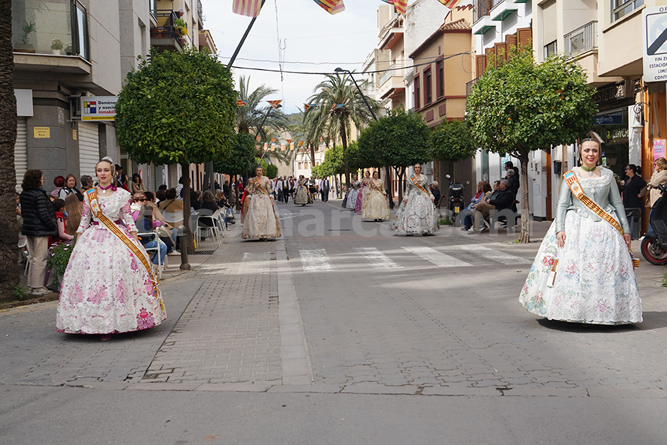 En este segon dia de passacarrers, s’ha mantingut la tradició que dividix el recorregut entre les diferents zones del poble, sent en esta ocasió les comissions de la part baixa les que han pujat fins a la zona de Las Ventas per a compartir la jornada amb la resta de fallers.