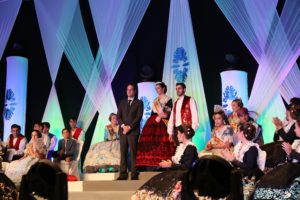 A l’tron també van pujar les falleres majors i els presidents de les dues falles de Xest, amb els seus homòlegs infantils, així com algunes de les que van ser reines en anys anteriors. Estant el tron ​​completat, va ser el moment dels obsequis i les dedicatòries a la reina, que lluïa al centre visiblement emocionada.