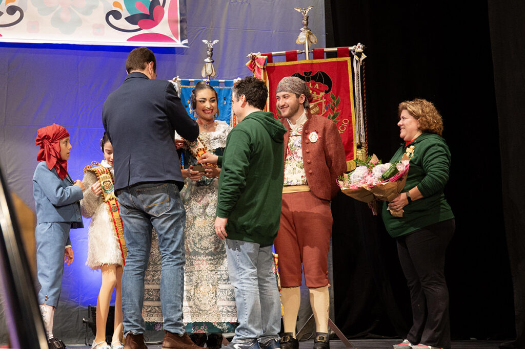 Després del pregó, va arribar el moment dels homenatges, destinats a reconéixer l’esforç i la dedicació dels fallers i falleres més compromesos amb la celebració de la festa. En aquesta ocasió les persones que van rebre la màxima recompensa fallera van ser Aurora Rocío Montsó García, César García Camilo, Manuel Lorente Sánchez, Jose Miguel Guillén Moya, Raquel Guzmán Andrés, Jéssica Guillén Peinado, Lucía Carmona Barba, Conchi Balaguer García i Alicia Ripoll Furriol. A més es va homenatjar a Pascual Sánchez Coberán, per la seua trajectòria de més de 50 anys dedicats a la tradició fallera, sent el seu nebot el va pujar a l’escenari en el seu lloc.