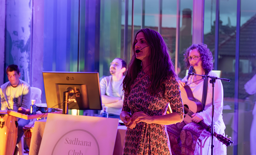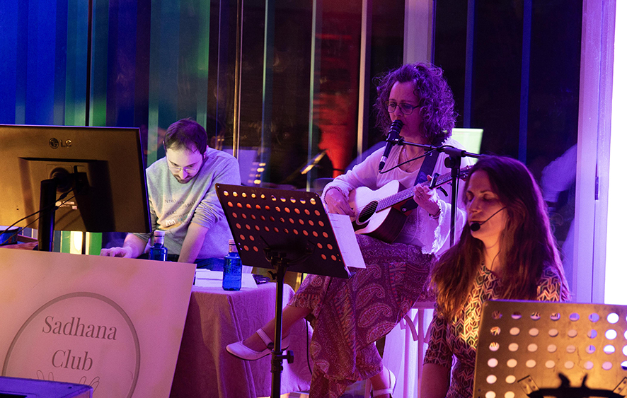 El concert va comptar amb música de percussió, guitarres, teclat i efectes de so, que van acompanyar als diferents exercicis de meditació guiada en un ambient de llum tènue i relaxant.