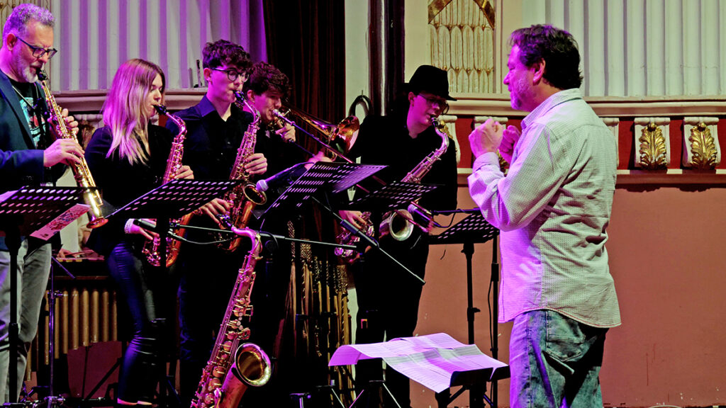 La fi de festa el va posar Comando Saxbone, format per joves músics de l’Artística, en els saxos David Alonso, Ariane Hernández i Ernest Almudever, amb el trombó Hugo Mas i amb el baix elèctric Javi Siles. Al costat de la resta de participants del concert van interpretar “Sota what” de Milers Davis, arrancant l’ovació del públic assistent.