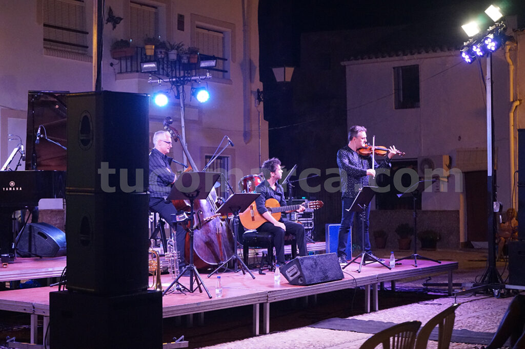 En aquesta ocasió, el dijous a la nit l’escenari muntat per a l’ocasió en aqueix espai cultural va albergar el concert de Monumental Jazz *Project, en el qual els seus cinc components van interpretar un repertori que va ser molt aplaudit pel nombrós públic que va tornar a respondre majoritàriament a la proposta cultural musical per a aquestes nits d’estiu en la localitat.
