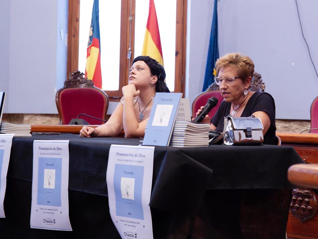 El passat divendres, 19 de setembre, el saló de plens de l’Ajuntament va acollir la presentació del primer llibre de la chestana Mar Vilalta Cerrada, titulat Myosotis, nom científic d’una flor coneguda com “la flor de l’amant etern o de l’amor desesperat”, i que arreplega un poemari que dona veu als processos de transformació personal de l’autora.