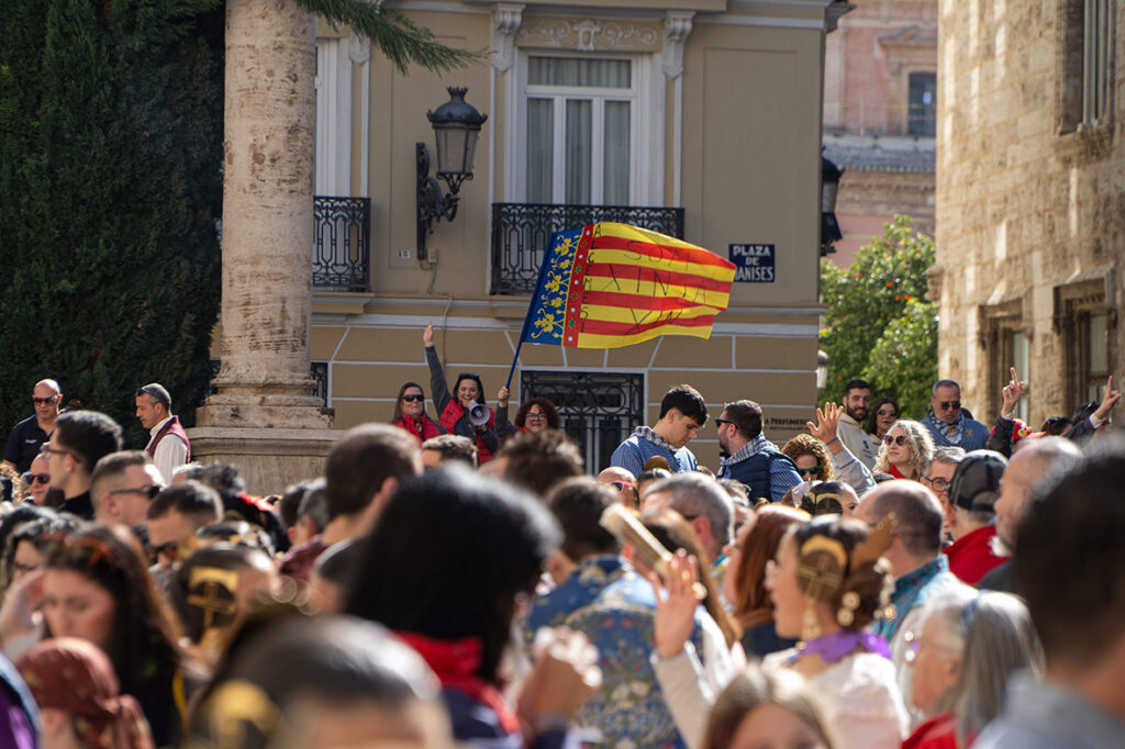 La plaça Manises ha començat el dia amb el soroll faller. L’orxata i el xocolate esperaven als assistents en este punt d’encontre del ‘fallerisme’. La música de les xarangues amenitzava un ambient que anava creixent segons avançava el matí, al ritme dels ‘Liaos’, ‘La Petardà’ i ‘La Cassalla’.