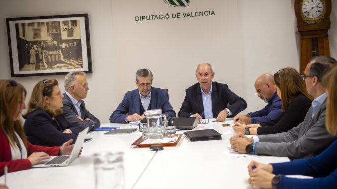 La Diputació de València ha acollit este matí una reunió de treball per a tractar amb el Ministeri per a la Transició Ecològica i Repte Demogràfic, l’Entitat Pública de Sanejament d’Aigües Residuals de la Comunitat Valenciana (EPSAR), i operadors d’aigua públics i privats, la reparació i adequació de les infraestructures de subministrament d’aigua potable, xarxes de sanejament i estacions de depuració afectades per la dana.