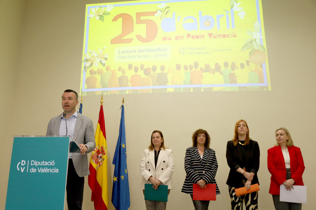 La commemoració del 25 d’abril en la Diputació de València ha finalitzat amb la lectura d’un manifest conjunt que va tirar avant en el ple de la institució amb els vots del PP, Ens Uneix, el PSPV i Compromís. El text de la moció, proposta per la vicepresidenta Enguix, denúncia l’origen de la discriminació contra la població valenciana i altres territoris de la Corona d’Aragó i convida a defensar l’autogovern valencià.