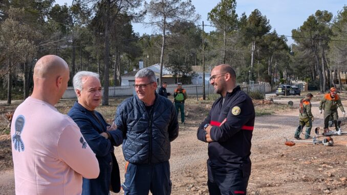 Efectius de les Brigades Forestals del Consorci Provincial de Bombers de València (CPBV) creen una faixa de protecció de 30 metres d’amplitud que separa el terreny urbanitzat de la massa forestal.