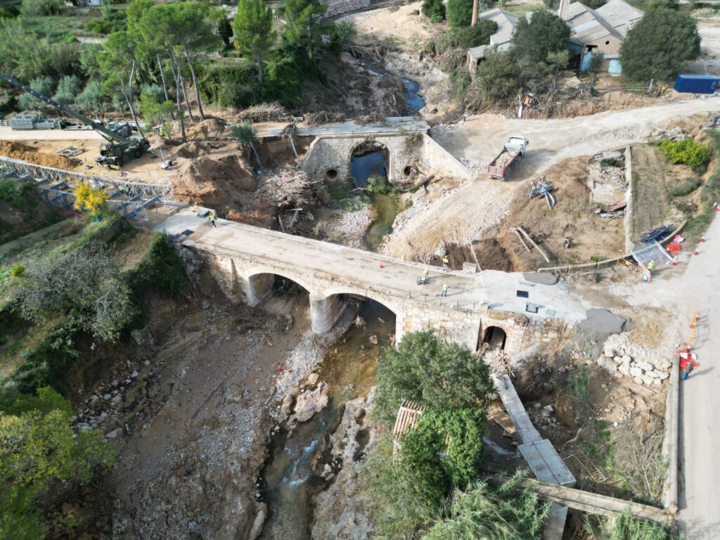 La vicepresidenta segona i responsable de Carreteres, Reme Mazzolari, avança que el pont provisional “estarà en servici abans del pròxim dilluns, una vegada completem els treballs d’adequació i pavimentació dels accessos per a fer-ho transitable”. Mazzolari ha destacat “la rapidesa amb la qual l’Exèrcit ha alçat el viaducte sobre el terreny condicionat pels operaris de Carreteres de la Diputació, la qual cosa permetrà recuperar el servici d’autobús a Bunyol i facilitar l’accés als transportistes, que amb els danys causats per la DANA el tenien restringit”.