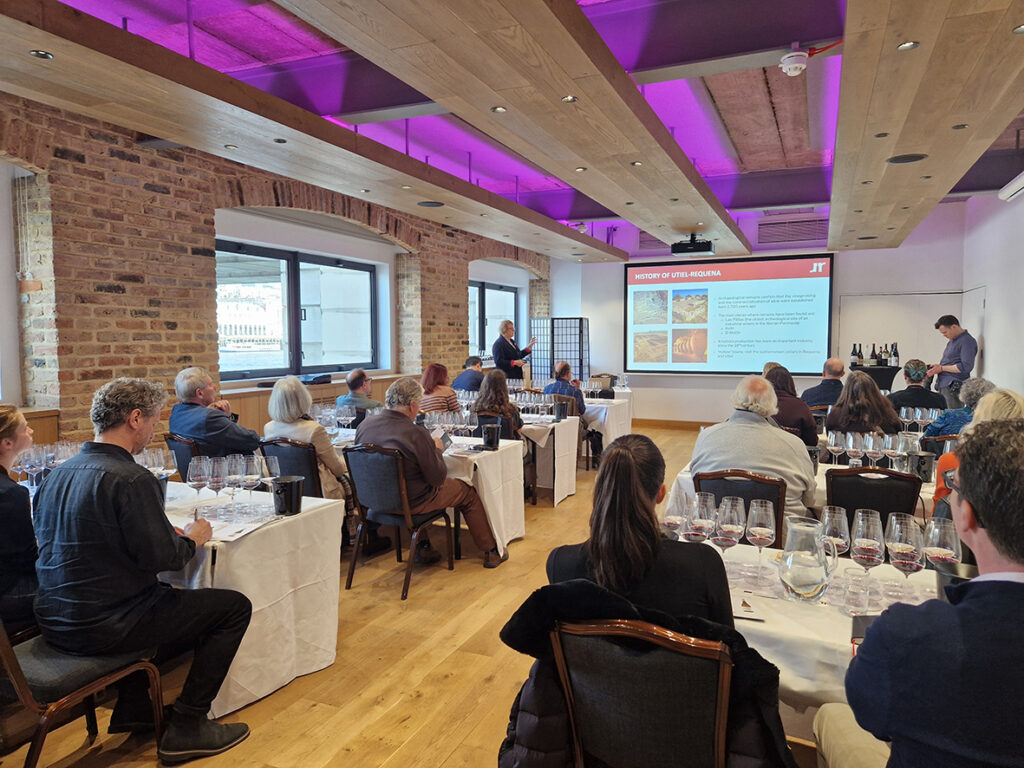 Dirigida per la Màster of Wine Sarah Janes Evans, una vintena de participants van catar 10 vins dels cellers participants alhora que es debatia sobre “Más allá de Bobal: Innovació, Patrimoni i Viticultura Sostenible en la DO Utiel-Requena”. Un tast amé i dinàmica que va conviure amb les dades més rellevants i destacats de la Denominació d’Origen Utiel- Requena.