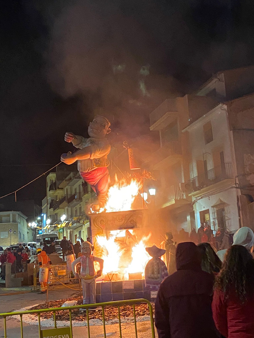 La falla Godayla de Godelleta va tancar les primeres festes falleres de 2024 amb la “cremà” dels seus monuments fallers, obra d’Arturo Vallés, en la tard nit del passat diumenge amb una gran participació de fallers i veïns del municipi de La Foia de Bunyol i amb un important xifra de visitants respecte a l’any passat amb la qual cosa s’evidencia que les festes falleres en aquesta localitat s’han assentat amb força en el calendari faller constituint-se en les primeres d’un cicle que acabarà amb les festes de poblacions com Turis que enguany tindran lloc del 4 al 7 d’abril, una vegada acaben les celebracions de la Setmana Santa els actes de la qual tenen lloc del 22 al 31 de març.