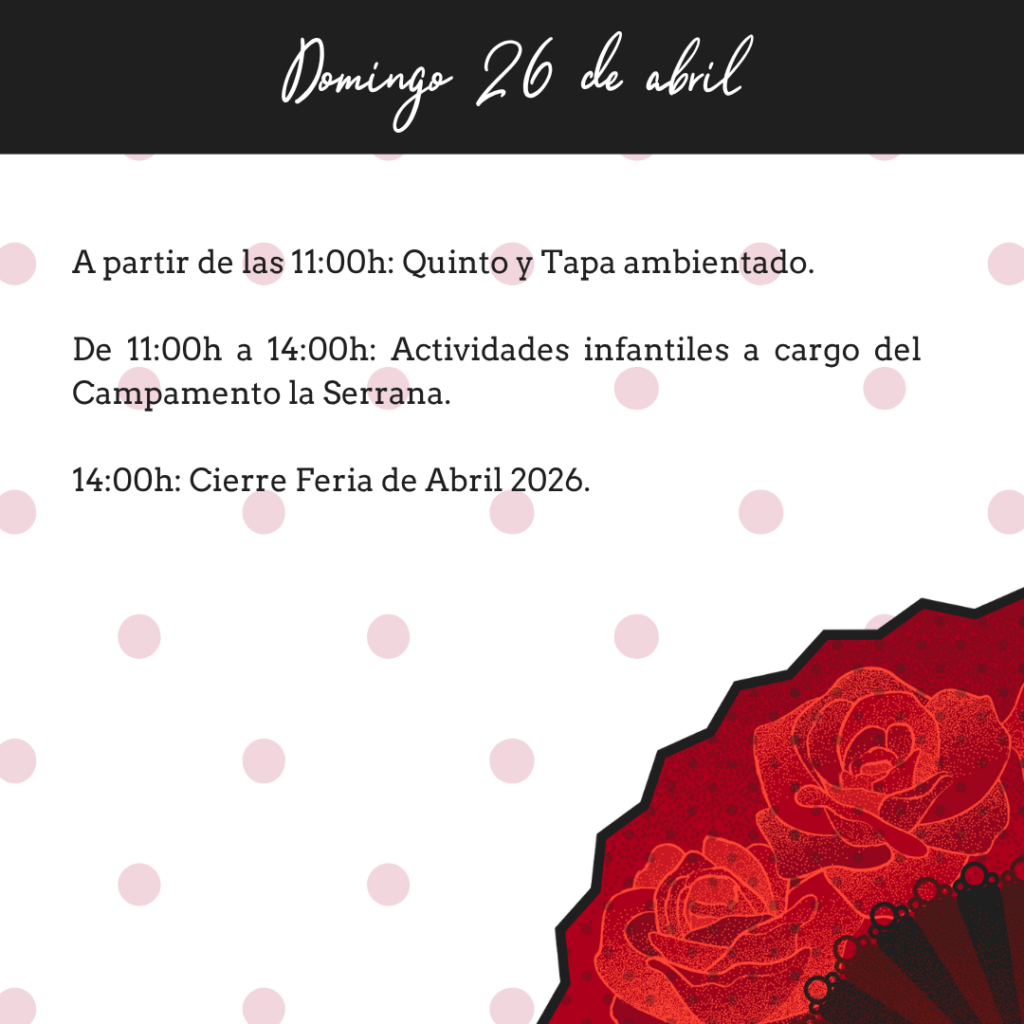 El diumenge 26 d’abril continuarà la programació en el mateix enclavament, consolidant aquesta Fira d’Abril com una de les cites lúdiques més destacades del calendari festiu local.