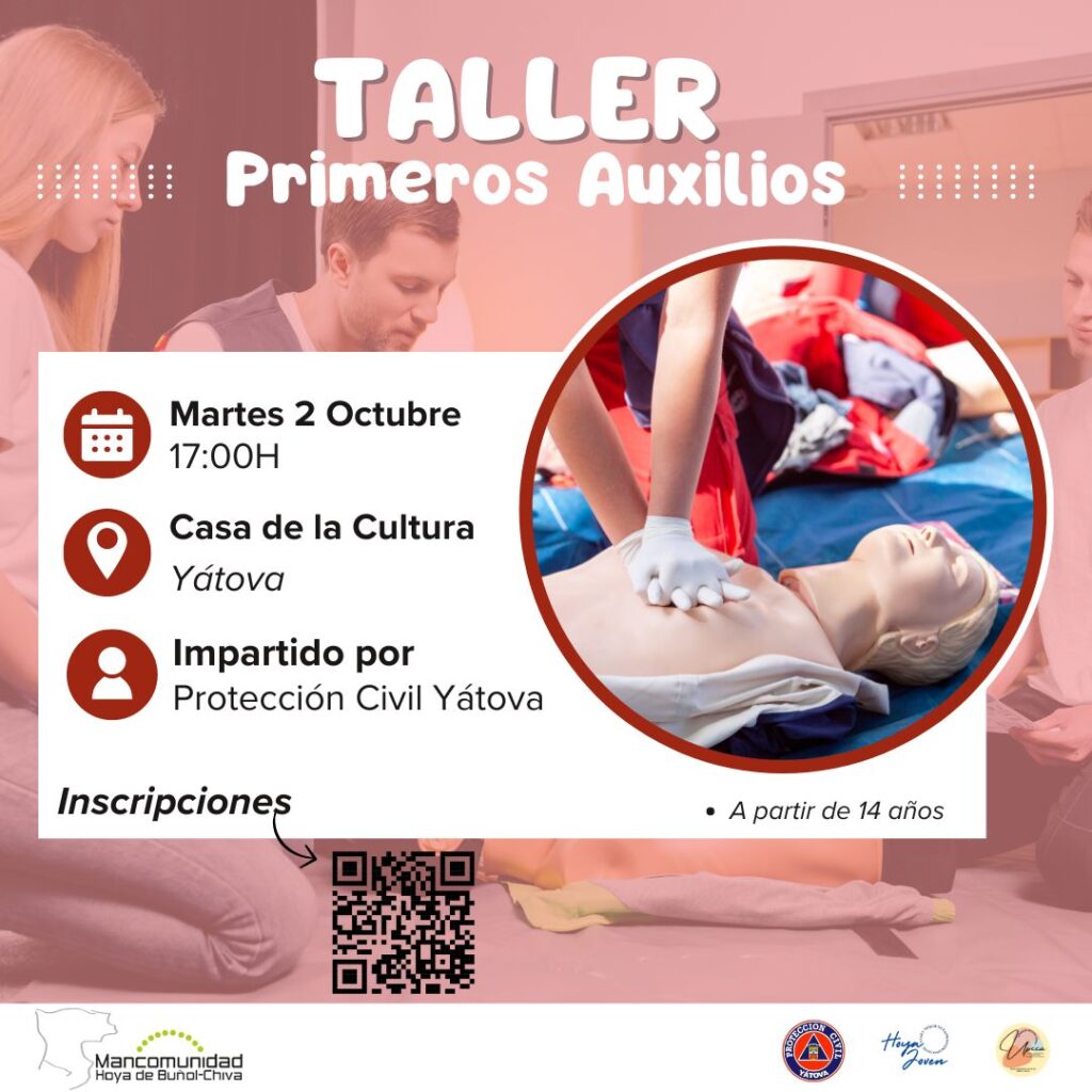 La Unitat de Prevenció de Conductes Addictives (UPCCA) i l’àrea de Joventut de la Mancomunitat Foia de Bunyol Xiva, organitzen, a la Casa de Cultura d’Iàtova, per al pròxim 2 d’octubre, un taller de primers auxilis destinat a tota la població.