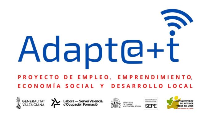 Adapt@+t és el Projecte d’Ocupació, Emprenedoria, Economia social i Desenvolupament local que naix dins de l’Acord Territorial en Matèria d’Ocupació i Desenvolupament Local participatiu i sostenible de la Mancomunitat de l’Interior Tierra del Vino (MITV) i està subvencionat per la Conselleria d’Economia Sostenible, Sectors Productius, Comerç i Treball en la Comunitat Valenciana.