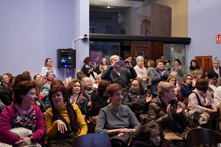 Abans de la projecció, l’equip tècnic encarregat del vídeo també va intervindre per a explicar els tres blocs en els quals s’havia dividit el relat audiovisual: treballs, cures, canvis i lluita; emmarcant tot això en les reivindicacions del 8M.
