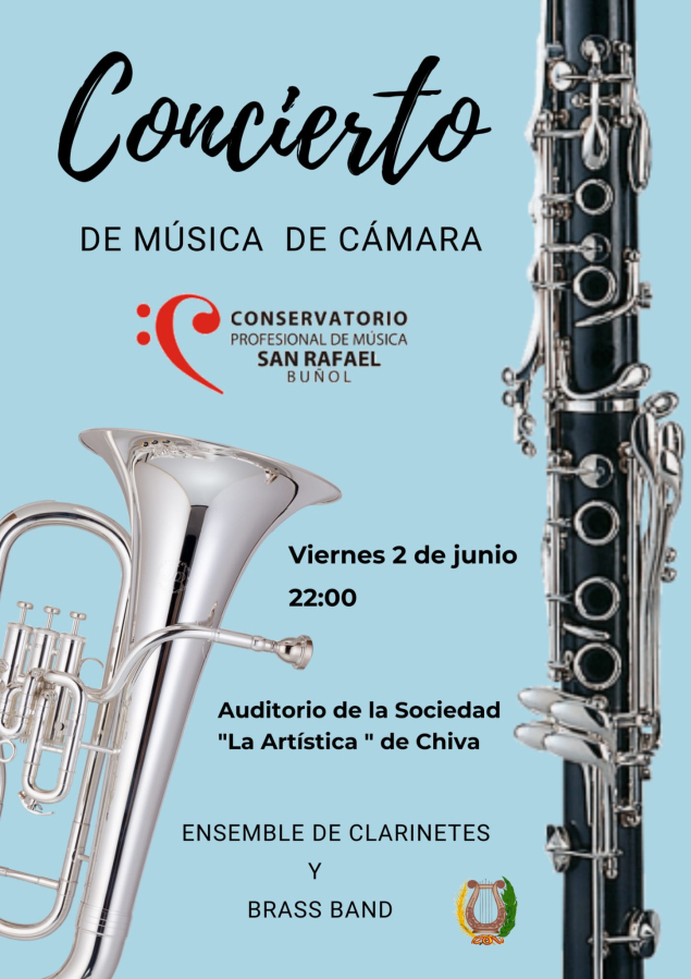 Per a divendres que ve, 2 de juny, el Conservatori de Música de Bunyol oferirà a la sala d’audicions de la Societat Musical, a les 22 hores, un magnifique concert de música de cambra, amb un assemble de clarinets i una brass band, amb la participació d’alumnes d’aquesta societat que realitzen estudis en el conservatori.