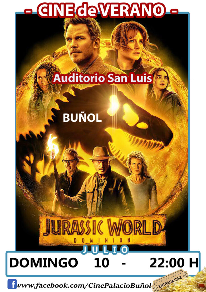 L’auditori municipal de Bunyol acull aquest diumenge, 10 de juliol, a les 22,00 hores la pel·lícula “Jurassic World: Dominion”, projecció que per motiu de les pluges no es va poder produir el dimarts.