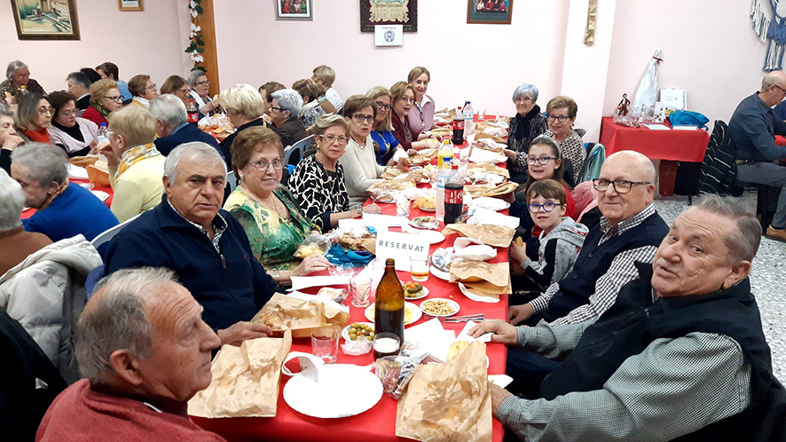 La seu social s’ha quedat xicoteta per a rebre a totes les persones que han pogut gaudir d’un bon entrepà de tonyina i “coca en tallà”, per a finalitzar aquest berenar amb els tradicionals dolços nadalencs.