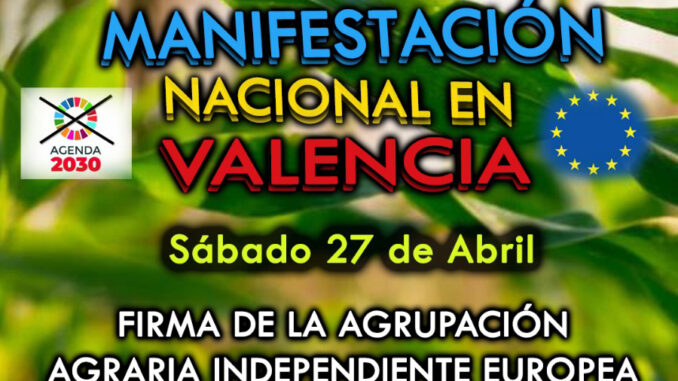 Agricultors independents han convocat una manifestació nacional que es durà a terme a València el dissabte , 27 d’abril. El punt de trobada serà en el Passeig de l’Albereda a l’altura de la torre de Sant Felip, a la 10,00 del matí.
